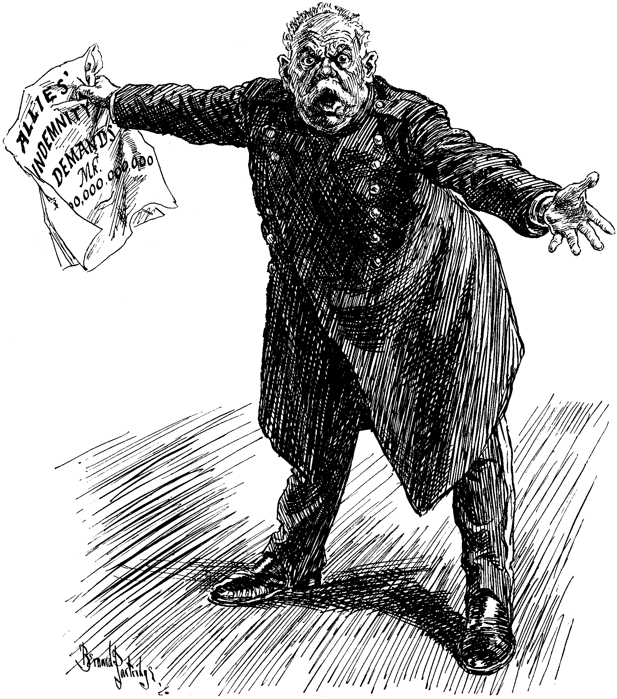 At the other end of the room an unmistakably German band was playing "Roses of Picardy," while all around me German waiters were running about deferentially, with trays in their hands. Even as I wondered one of them approached and laid the bill on my table with a friendly smile and "Tree mark, bleesir."