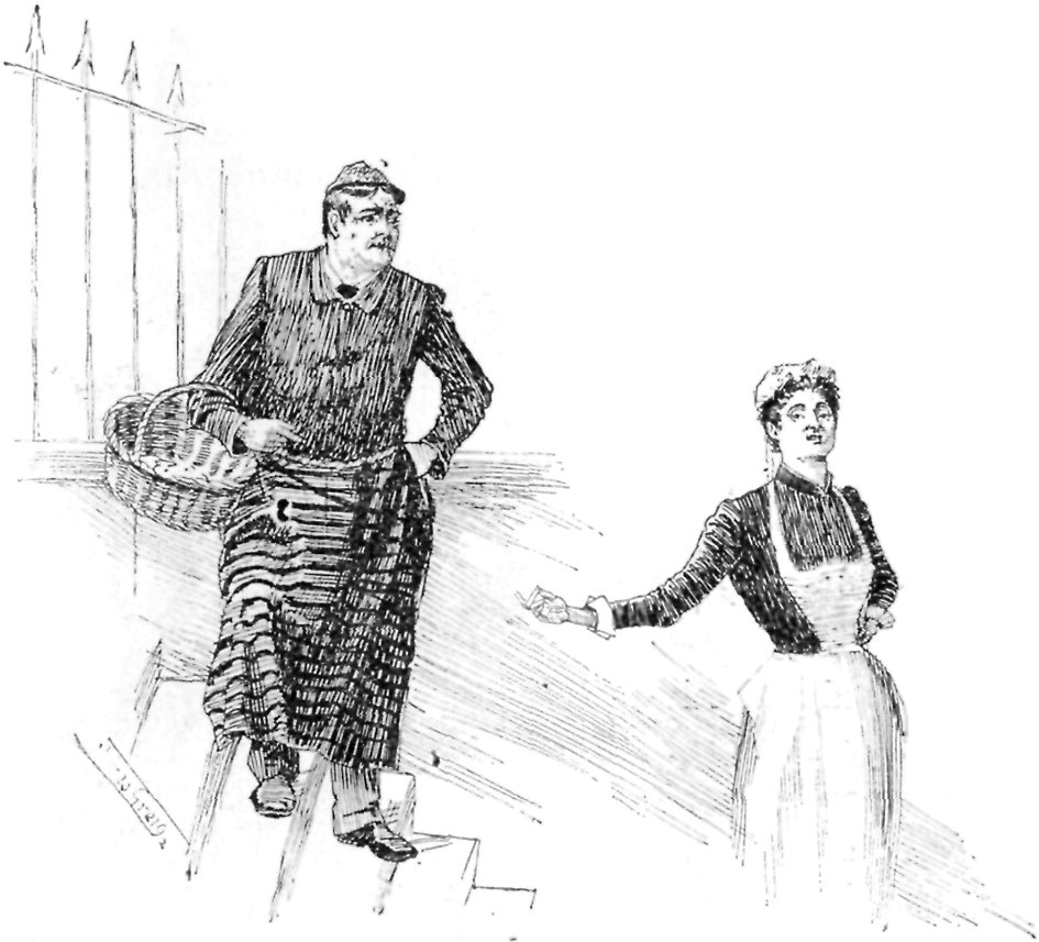 On the following day, Beauty and I were duly driven to the station, the former being luxuriously nested in a small hamper specially furnished for the occasion. About half-way on the road, just as we had mounted a long, steep hill, the cat managed to roll his residence from the stern of the dog-cart and trundle himself half-way home again. Luckily, he screeched blue murder at the tip-top of his voice, or we might not have missed the beast. As it was, his cyclical retrogression made us just too late for the train, and we had to wait two hours for the next. So I seated myself on the hamper—like Patience on the proverbial monument—and beheld the coachman depart homewards, with a sympathetic hat-touching salute, leaving me with a gloomy conviction of coming misfortune. The train, when it did arrive, was tolerably empty, and I secured a vacant first-class. For a time all went happily; then the cat commenced groaning.