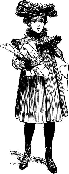 She stumbled now as she followed the young lady into the waiting-room. Her big, plume-covered hat tipped over one ear, but she, too, had so many bundles, that she could not spare a hand to straighten it.