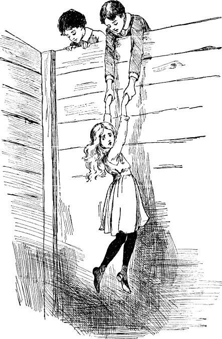 "Whew! It's dark down here!" said Keith. "Were you frightened, Ginger?" he asked, as he helped Malcolm unfasten the cords that bound her. But Ginger made no reply to either questions or apologies. She walked on in dignified silence, too deeply hurt by their neglect, too full of a sense of the wrong they had done her, to trust herself to speak without crying, and she intended to be game to the last. But when she came upon Miss Allison, and suddenly found herself folded safe in her arms, with pitying kisses and comforting caresses, she clung to her, sobbing as if her heart would break.