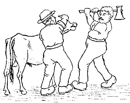 —J'voudrais savoir si Barthélemy Lavigne a l'droit de tuer mon cochon, parc'qu'y pacageait dans le chemin.