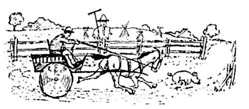 —Vous savez, en arrivant su'l'côteau, il s'est mis à pousser son ch'val, pis mon cochon s'est mis à courir devant lui au p'tit trot—un grand cochon maigre—pis Barthélemy a poussé su' l'cochon, pousse, pousse, pousse, jusqu'à c'que l'cochon prenne l'épouvante; pis, en arrivant cheux nous, y a voulu prend' la barrière, pis y a viré drette en équerre.