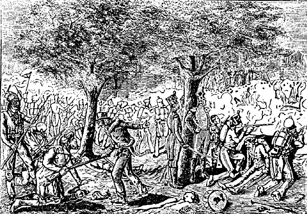Ils le représentent, avant la bataille, cherchant, exploitant toutes les ressources que le terrain, la rivière et la forêt pouvaient lui offrir, faisant de chaque arbre, de chaque pierre un retranchement, un abri pour ses troupes, frappant du pied la terre pour en faire jaillir des éléments de victoire. Et lorsque la bataille est commencée, ils le montrent entraînant ses braves voltigeurs à sa suite; dominant le bruit de la bataille des éclats de sa voix présent sur tous les points à la fois; multipliant le nombre de ses soldats par la rapidité et la précision de ses mouvements; dispersant un instant ses forces et les ralliant soudain pour tomber sur un point où on ne l'attendait pas; faisant, faire un bruit de trompettes et pousser des cris effrayants; employant mille ruses pour étourdir, surprendre l'ennemi, et lui faire croire qu'il avait à combattre des milliers d'hommes; donnant, enfin l'exemple d'un courage, d'une bravoure que le danger semblait grandir, bravant les balles avec cette héroïque insouciance qui l'avait illustré sur les champs de bataille de la Martinique, et de la Guadeloupe.