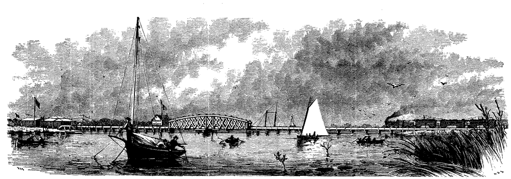 To a great city all the renovating and exhilarating qualities of sea-breezes and sea-bathing are but as the waters of Tantalus, unless the place which offers these advantages be easy of access. In this respect Atlantic City has for Philadelphia a superiority over all its rivals. The Camden and Atlantic Railroad, to whose secretary and treasurer, Mr. D.M. Zimmermann, we are indebted for much information, has simply drawn a straight line to the coast, which may be reached in an hour and three-quarters from Vine street wharf. The villages on the route, like the seaside terminus, owe their existence to the road, which is now reaping the reward of a far-sighted enterprise.