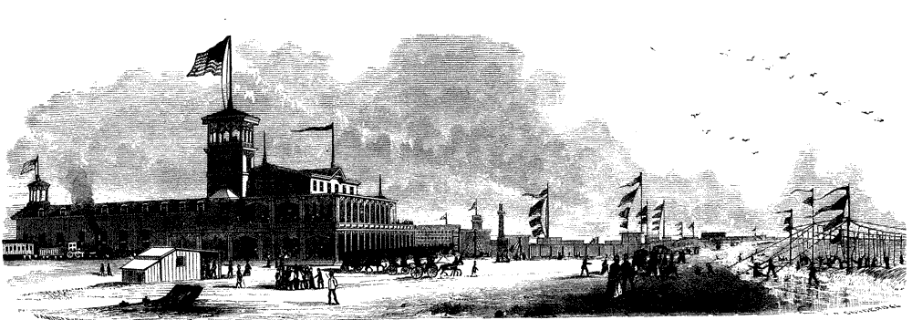 One goes to the seaside not for pomp and peacock's tails, but for saltness, Nature and a bite of fresh fish. To build a city there that shall not be an insult to the sentiment of the place is a matter of difficulty. One's ideal, after all, is a canvas encampment. A range of solid stone villas like those of Newport, so far as congruity with a watering-place goes, pains the taste like a false note in music. Atlantic City pauses halfway between the stone house and the tent, and erects herself in woodwork. A quantity of bright, rather giddy-looking structures, with much open-work and carved ruffling about the eaves and balconies, are poised lightly on the sand, following the course of the two main avenues which lead parallel with the shore, and the series of short, straight, direct streets which leap across them and run eagerly for the sea. They have a low, brooding look, and evidently belong to a class of sybarites who are not fond of staircases. Among them, the great rambling hotel, sprawling in its ungainly length here and there, looks like one of the ordinary tall New York houses that had concluded to lie over on its side and grow, rather than take the trouble of piling on its stories standing. In this encampment of wooden pavilions is lived the peculiar life of the place.