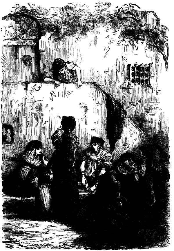 Only the djouads and marabouts—that is to say, the religious or secular nobles—have the privilege of hunting with the falcon. The patrician bird, taken by the agha from the shoulder of his hawk-bearer, is about as large as a pigeon, the head small, beak short and strong, the claws yellow and armed with sharp talons. The bird rides upon his master's leather glove until a hare is started: then, unhooded and released, his first proceeding is to dart into the zenith as if commissioned to make a hole in the sky. No fear, however, that the poor panting quarry is lost for an instant from the vision of that infallible eye, which follows far aloft in the blue, invisible and fatal. Soon the cruel bird drops like an aërolite, and, as the deed is explained to us, doubles up his yellow hand into a fist, and deals the animal a sharp blow on the skull. Directly, as the horsemen approach, he is found with his obtuse head bent over his prey, digging out its eyes by the spoonful.