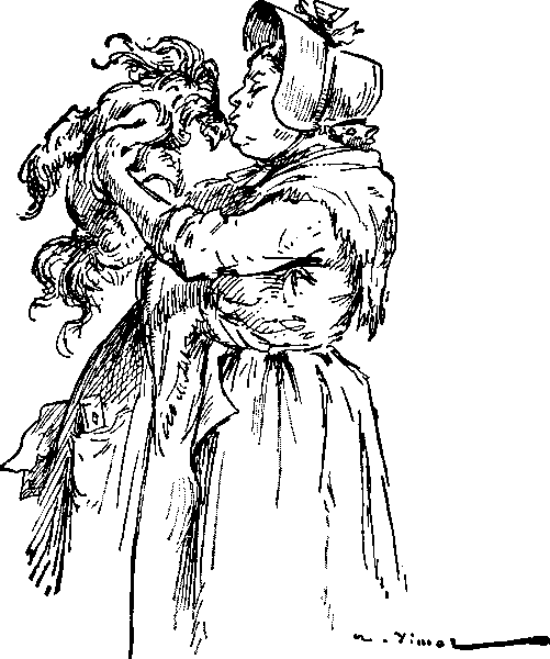 57Germaine, driven wild by this sight, began to exclaim: "Yes, sir,—yes, Madame. Yes, sir,—yes, Madame," and threw herself into the arms first of the American, and then of Mother Etienne, who still remained obdurate.