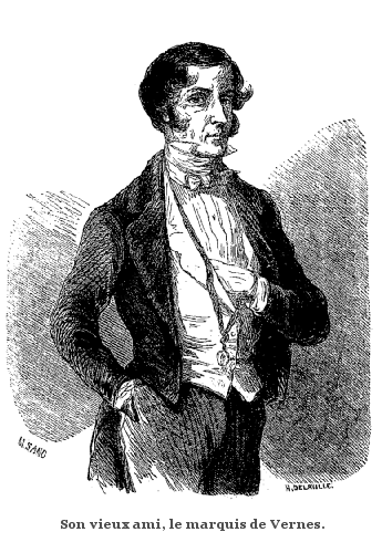 Il réfléchit une minute en nous regardant alternativement avec des yeux troublés. Puis, prenant tout à coup une attitude dégagée, imitée du marquis de Vernes:
