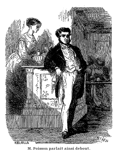 —Tenez, le voilà qui piaille, dit Horace: permettez-moi de le reporter dans la loge de ses chers parents.»