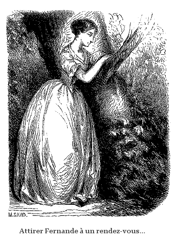 Madame de Theursan a bien remarqué ma figure sur la route; mais elle ne m'avait jamais vu, et j'avais l'air d'un voyageur de commerce si indifférent à elle et à sa fille, qu'elle ne pouvait deviner mon dessein. Je me suis arrêté sur la route, à l'entrée du vallon de Saint-Léon, et je l'ai laissée s'engager dans la plaine; j'ai envoyé alors mon équipage au presbytère en disant au postillon d'aller lentement, et, en une demi-heure, par le sentier des Collines, je suis arrivé à travers bois jusqu'au château; je suis entré sans voir personne, et je me suis assis dans le salon derrière le paravent où l'on met parfois les enfants pendant le jour. Il y avait un berceau vide, un seul; mon coeur se serra; je devinai que la petite fille était morte, et je répandis des larmes amères en songeant au surcroît de douleur qui attendait mon infortunée Fernande.