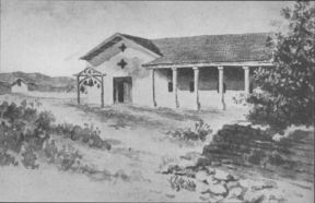 FACHADA OF MISSION CHAPEL AT LOS ANGELES.