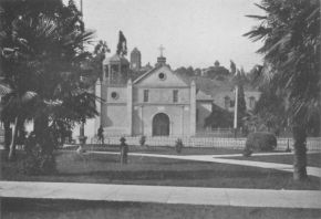 In studying carefully the whole chain of Missions in California I found that the only building that contains all these elements in harmonious combination is that of San Luis Rey. Hence it alone is to be regarded as the typical Mission structure, all the others failing in one or more essentials. Santa Barbara is spoiled as a pure piece of Mission architecture by the introduction of the Greek engaged columns in the fachada. San Juan Capistrano undoubtedly was a pure "type" structure, but in its present dilapidated condition it is almost impossible to determine its exact appearance.