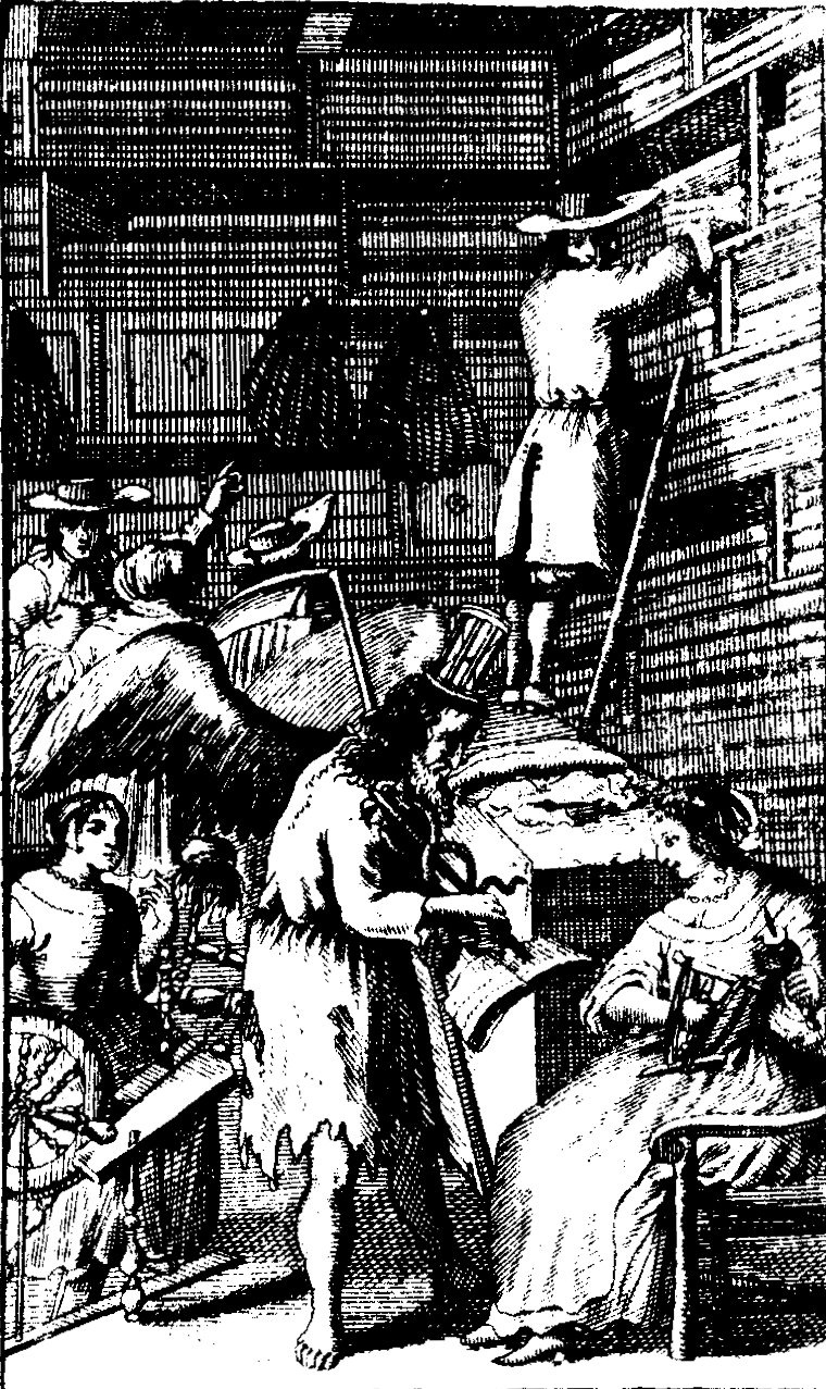But now you apprehend, to your great joy and comfort, that this arrow comes out of the Quiver of such as are indebted to every body, and suffer themselves daily to be durrid; who are continually pratling with the Neighbors, and gadding along the streets; they take notice of every dore that opens, and neglect their own houskeeping having no understanding to govern it; the dishes, pots and pans are alwaies standing in the middle of the flore; and Benches and Stools are all covered and ly filled with the Childrens dirty clouts, and the Windows are so thick with dirt, that the Sun can hardly shine through them. Whose first word is, when any body comes into their house, What! by reason of these sad times a body hath neither joy nor delight in their houskeeping. If we wash the glass windows, they are in danger of breaking, and at present we cannot bear with any losses. And these ordinarily have more pratling and felling then any other women, and no body knows any thing better then these sworn tittletattlers; they are seldom to be found with a pin-cushion upon their laps; and are the occasion that their houses, children and Maids stink of filth and sluttishness, with their cloaths out at the elbous, and their stockins out at the heels. Whilest their husbands sit in the Alehouses, and seek by drinking, domineering and gaming to drive these damps of the sad times out of theire brains; which continueth so long, till that all is consumed, and they both fly damnably in debt to their Creditors.