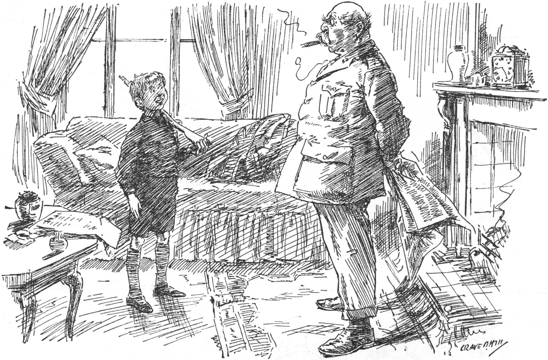Nephew (carried away by martial enthusiasm and prepared to undertake anything). "BOTH, UNCLE."
