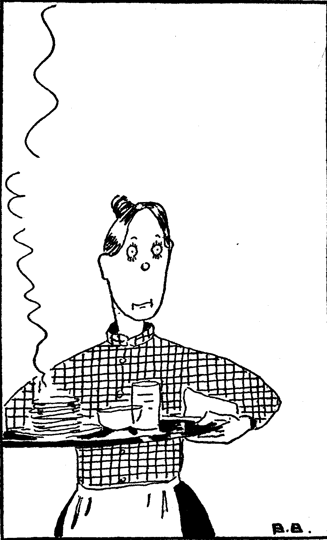 Bill Huggins cleaned the stove with his towel last week sos everything would be neet for inspecshun. Angus got hold of it in the dark next mornin. Gee, youd haft laft, Mable.
