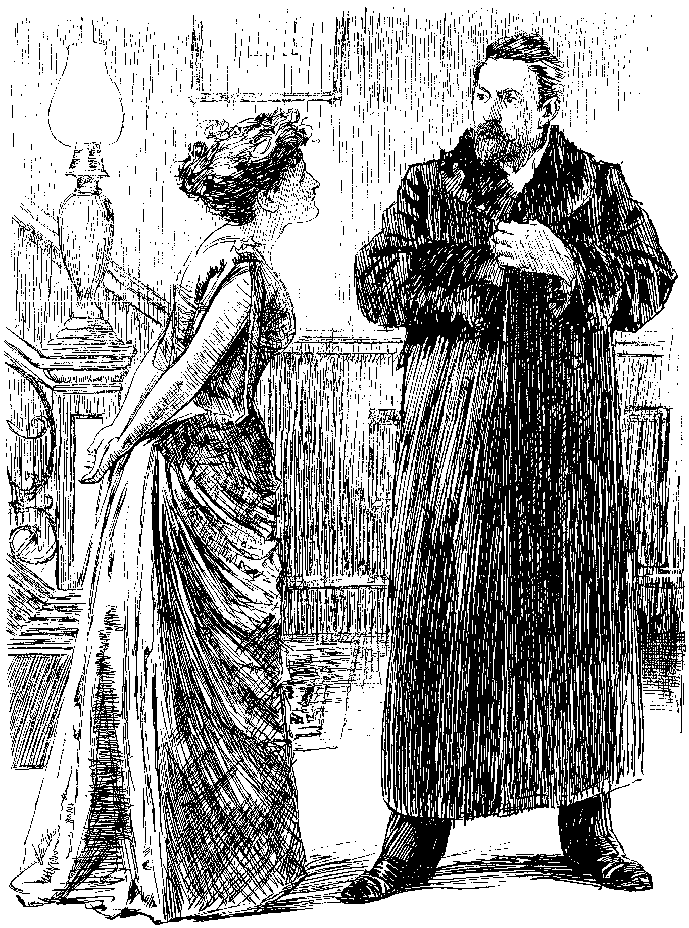 "Please let me get into my carriage," observed his Lordship. Then discovering, from my bowing attitude, that I meant no insolence by my suggestion, he added,—"And as for your umbrella—surely on this rainy night you can make use of it yourself?"