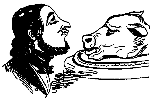But it is to the art of knocker-designing that I flatter myself I have been of most service. By the elevation of my chin, and the assistance of a long wig, I can present an excellent resemblance of a lion, with this great advantage over the real animal—I can vary the expression according to circumstances—