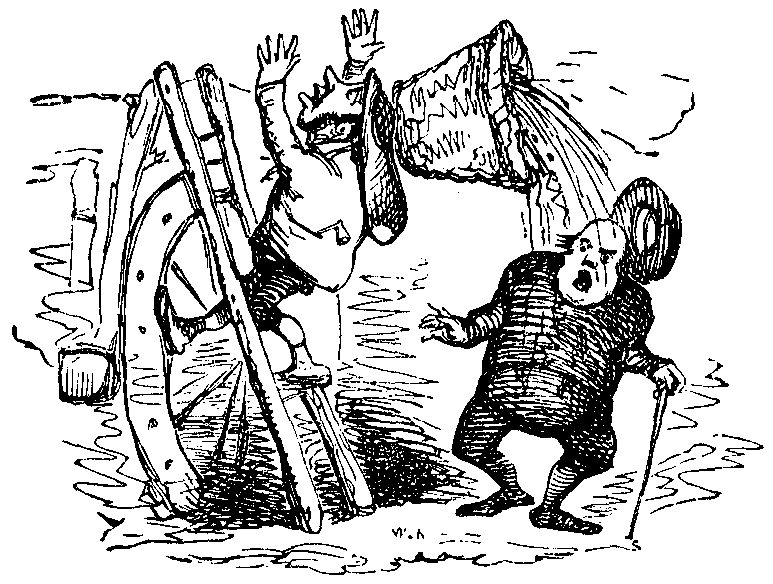 “Pray, kind lady, help the poor shipwrecked sailor—cast away on his voyage to the West Ingees, in a dreadful storm. Sixteen hands on us took to the long-boat, my lady, and was thrown on a desart island, three thousand miles from any land; which island was unfortunately manned by Cannibals, who roast and eat every blessed one of us, except the cook’s black boy; and him they potted, my lady, and I’m bless’d but they’d have potted me, too, if I hadn’t sung out to them savages, in this ‘ere sort of way, my lady—
