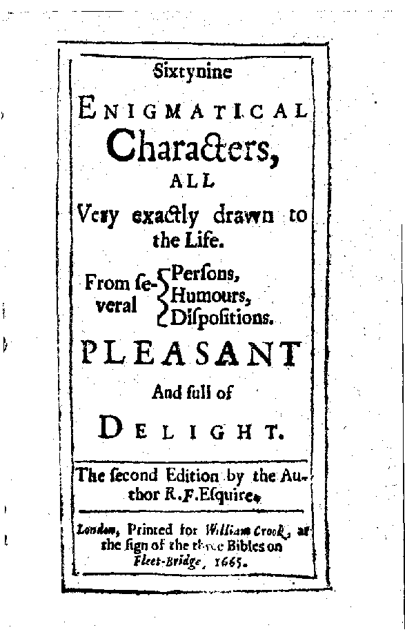 Richard Flecknoe's Of one that Zany's the good Companion and Of a bold abusive Wit (second edition, 1665);