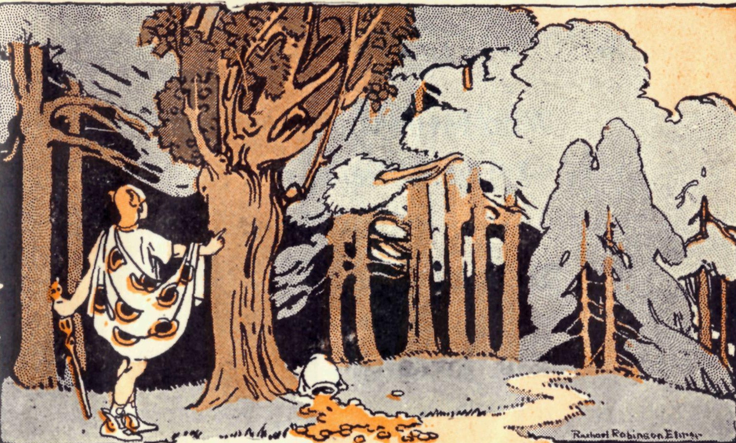 They were poor, but they were never unhappy. They had many hives of bees from which they got honey, and many vines from {10} which they gathered grapes. One old cow gave them all the milk that they could use, and they had a little field in which grain was raised.
