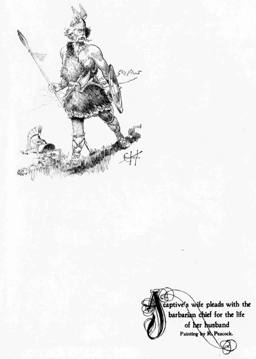 While the Barbarians roamed through the city in quest of prey, the humble dwelling of an aged virgin, who had devoted her life to the service of the altar, was forced open by one of the powerful Goths. He immediately demanded, though in civil language, all the gold and silver in her possession; and was astonished at the readiness with which she conducted him to a splendid hoard of massy plate, of the richest materials and the most curious workmanship. The Barbarian viewed with wonder and delight this valuable acquisition, till he was interrupted by a serious admonition, addressed to him in the following words: "These," said she, "are the consecrated vessels belonging to St. Peter; if you presume to touch them, the sacrilegious deed will remain on your conscience. For my part, I dare not keep what I am unable to defend." The Gothic captain, struck with reverential awe, despatched a messenger to inform the King of the treasure which he had discovered; and received a peremptory order from Alaric, that all the consecrated plate and ornaments should be transported, without damage or delay, to the church of the apostle.
