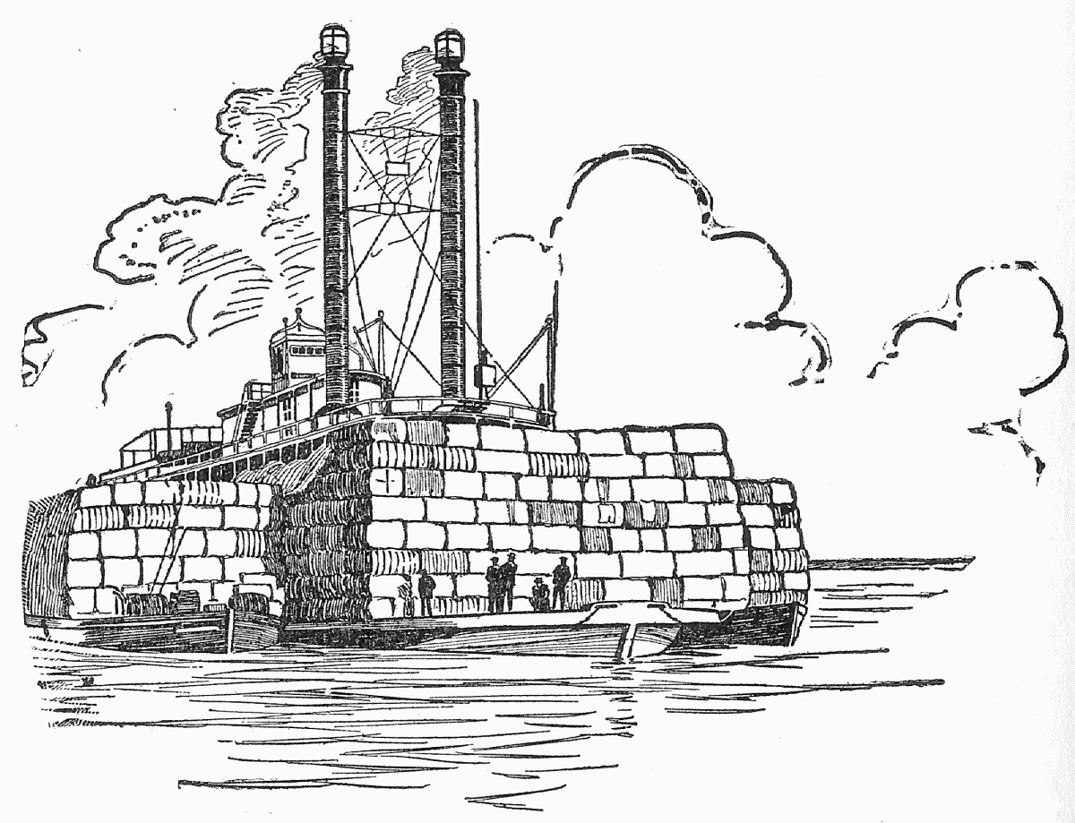 Until 1865 the steamboats controlled the transportation business of all the territory drained by the Mississippi and its tributaries. But two causes for their undoing had already begun to work. The long and fiercely-fought war had put a serious check to the navigation of the rivers. For long months the Mississippi was barricaded by the Confederate works at Island Number 10, at New Madrid and at Vicksburg. Even after Grant and Farragut had burst these shackles navigation was attended with danger from guerrillas on the banks and trade was dead. When peace brought the promise of better things, the railroads were there to take advantage of it. From every side they were pushing their way into New Orleans, building roadways across the "trembling prairies," and crossing the water-logged country about the Rigolets on long trestles. They penetrated the cotton country and the mineral country. They paralleled the Ohio, the Tennessee, and the Cumberland, as well as the Father of Waters, and the steamboat lines began to feel the heavy hand of competition. Captains and clerks found it prudent to abate something of their dignity. Instead of shippers pleading for deck-room on the boats, the boats' agents had to do the pleading. Instead of levees crowded with freight awaiting carriage there were broad, empty spaces by the river's bank, while the railroad freight-houses up town held the bales of cotton, the bundles of staves, the hogsheads of sugar, the shingles and lumber. On long hauls the railroads quickly secured all the North and South business, though indeed, the hauling of freight down the river for shipment to Europe was ended for both railroads and steamboats, so far as the products raised north of the Tennessee line was concerned. For Page 301a new water route to the sea had been opened and wondrously developed. The Great Lakes were the shortest waterway to the Atlantic, and New York dug its Erie Canal which afforded an outlet—pinched and straitened, it is true, but still an outlet—for the cargoes of the lake schooners and the early steamers of the unsalted seas. Even the commonwealths forming the north bank of the Ohio River turned their faces away from the stream that had started them on the pathway to wealth and greatness, and dug canals to Lake Erie, that their wheat, corn, and other products might reach tidewater by the shortest route. The great cargoes from Cincinnati, St. Louis, and Louisville, began to be legends of the past, and the larger boats were put on routes in Louisiana, or on the Mississippi, from Natchez south, while others were reduced to mere local voyages, gathering up freight from points tributary to St. Louis. The glory of the river faded fast, and the final stroke was dealt it when some man of inventive mind discovered that a little, puffing tug, costing one-tenth as much as a fine steamboat, could push broad acres of flatboats, loaded with coal, lumber, or cotton, down the tortuous stream, and return alone at one-tenth the expense of a heavy steamer. That was the final stroke to the picturesqueness and the romance of river life. The volume of freight carried still grows apace, but the glory of Mississippi steamboat life is gone forever.Page 302
