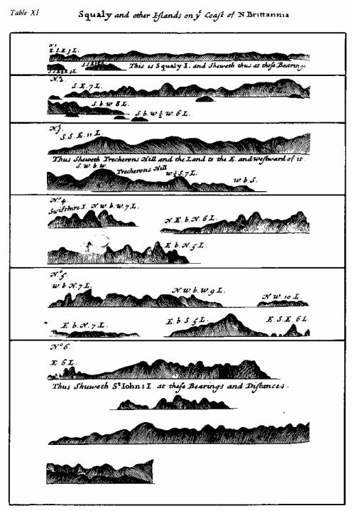 About a week after our coming ashore our men that lived at this new habitation saw two ships making towards the island. Before night they brought me the news; and I ordered them to turn about a score of turtle to be in readiness for their ships if they should touch here: but before morning they were out of sight, and the turtle were released again. Here we continued without seeing any other ship till the second of April; when we saw 11 sail to windward of the island: but they likewise passed by. The day after appeared 4 sail, which came to anchor in this bay. They were His Majesty's ships the Anglesey, Hastings and Lizard; and the Canterbury East India ship. I went on board the Anglesey with about 35 of my men; and the rest were disposed of into the other 2 men-of-war.