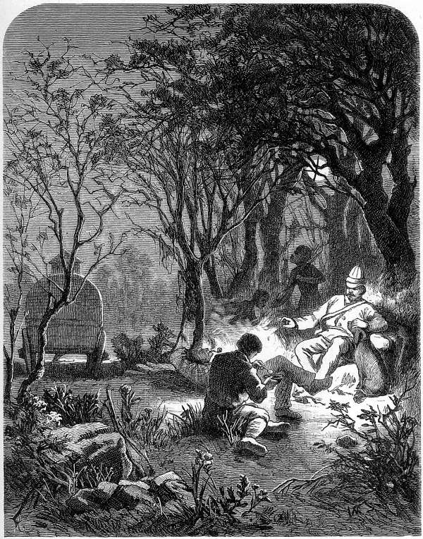 Eine große Erleichterung während meines dritten Aufenthaltes in den Central-Diggings erfuhr ich durch meinen Cap'schen Halfcast-Diener mit Namen Jan van Stahl, der englisch und holländisch schreiben konnte, es auch bald begriff, mir die Medikamente bereiten zu helfen und überdies ein ausgezeichneter Eincassierer war. In einem der vielen Kaufläden lernte ich einen jungen Commis kennen, der mir seine Berufsgenossen an Bildung zu überragen schien und auch sonst ein einnehmendes Wesen hatte. Ich machte ihm daher, als ich mich seines Charakters versichert hielt, den Antrag, mit mir zu gehen, und einen Monat darauf kam er auch thatsächlich zu mir, da sein Brodherr das Geschäft aufgegeben hatte. Theunissen, so hieß mein neuer Gefährte, wurde bald mein Freund, und obwohl wir über ein Jahr bei einander wohnten und lebten, hatte ich mich nicht eher ernstlich über ihn zu beklagen, als am Zambesi, woselbst er mich im Stiche ließ, da er der ihm vom Fieber drohenden Gefahr entgehen wollte. In Dutoitspan hatte er sich bald in das Zubereiten der Medicamente gefunden und da er eine ziemlich gute Kenntniß der Landwirthschaft besaß, war mir oft sein Rath, namentlich was die Wahl der Zugthiere etc. betraf, von nicht unerheblichem Nutzen. Der Diener van Stahl hatte keine Lust mit in's Innere zu reisen—die Löwen waren ihm zu schreckliche Gestalten—dagegen entschloß sich der Hirte Pit Dreyer mitzugehen.