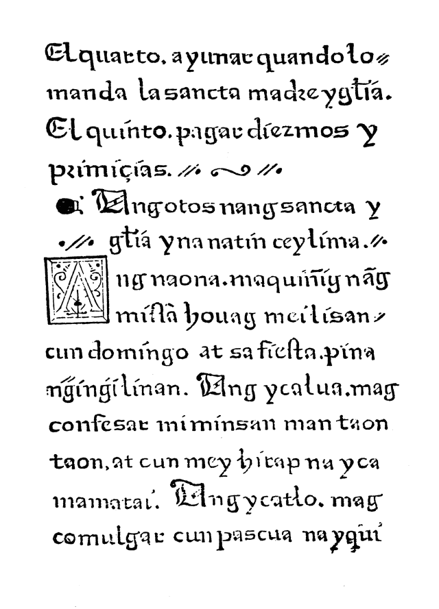 “There have been printed primers and catechisms of the faith, one in Spanish and Tagalog, which is the native language, and the other in Chinese, which are being sent to Your Majesty, the Tagalog priced at two reales and the Chinese at four, which is hoped will be of great benefit.”