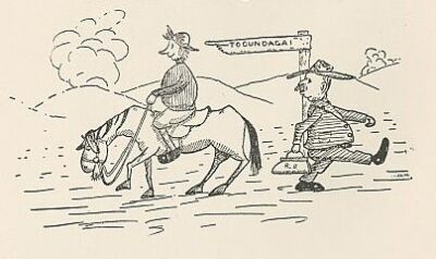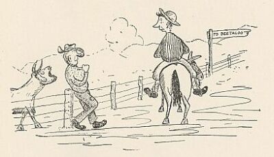 UPON THE ROAD TO ROCKABOUT Upon the road to Rockabout I came upon some sheep-- A large and woolly flock about As wide as it was deep. I was about to turn about To ask the man to tell Some things I wished to learn about Both sheep and wool as well, When I beheld a rouseabout Who lay upon his back Beside a little house about A furlong from the track. I had a lot to talk about, And said to him "Good day." But he got up to walk about, And so I went away--