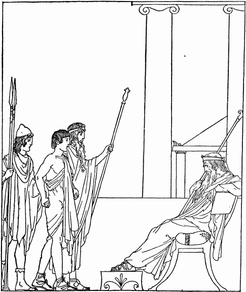 Then the minstrel sang of Agamemnon. He was King of rich Mycenæ, and his name was so high and his deeds were so renowned that all the Kings of Greece looked to him. Now Agamemnon, seeing Menelaus, his brother, flouted by the Trojans, vowed to injure Troy. And he spoke to the Kings and Princes of Greece, saying that if they all united their strength they would be able to take the great city of Troy and avenge the slight put upon Menelaus and win great glory and riches for themselves.