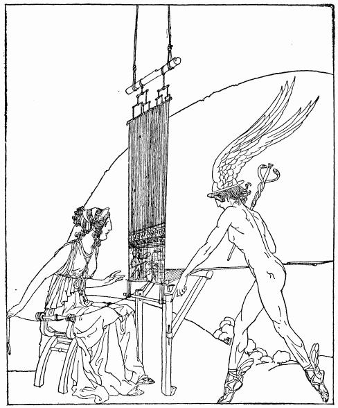 'I will tell you of the council what this device is. The lady Penelope set up a great loom in her house and began to weave a wide web of cloth. To each of us she sent a message saying that when the web she was working at was woven, she would choose a husband from amongst us. "Laertes, the father of Odysseus, is alone with none to care for him living or dead," said she to us. "I must weave a shroud for him against the time which cannot now be far off when old Laertes dies. Trouble me not while I do this. For if he should die and there be no winding-sheet to wrap him round all the women of the land would blame me greatly."
