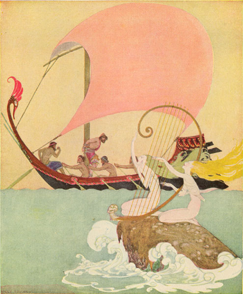 And now they set up the mast of pine and they made it fast with forestays, and they hauled up the sails with ropes of twisted oxhide. And a wind came and filled out the sails, and the youths pulled at the oars, and the ship dashed away. All night long Telemachus and his friends sat at the oars and under the sails, and felt the ship bearing them swiftly onward through the dark water. Phemius, the minstrel, was with them, and, as the night went by, he sang to them of Troy and of the heroes who had waged war against it.