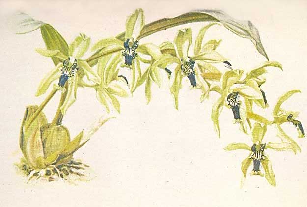 Gradually they came to see that the new field was open, and they entered with a rush. In 1830 a number of collections still famous in the legends of the mystery are found complete. At the Orchid Conference, Mr. O'Brien expressed a "fear that we could not now match some of the specimens mentioned at the exhibitions of the Horticultural[Pg 44] Society in Chiswick Gardens between 1835 and 1850;" and extracts which he gave from reports confirm this suspicion. The number of species cultivated at that time was comparatively small. People grew magnificent "specimens" in place of many handsome pots. We read of things amazing to the experience of forty years later. Among the contributions of Mrs. Lawrence, mother to our "chief," Sir Trevor, was an Aerides with thirty to forty flower spikes; a Cattleya with twenty spikes; an Epidendrum bicornutum, difficult to keep alive, much more to bloom, until the last few years, with "many spikes;" an Oncidium, "bearing a head of golden flowers four feet across." Giants dwelt in our greenhouses then.