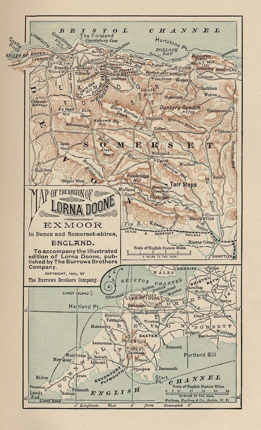 Of Lorna, of my lifelong darling, of my more and more loved wife, I will not talk; for it is not seemly that a man should exalt his pride. Year by year her beauty grows, with the growth of goodness, kindness, and true happiness—above all with loving. For change, she makes a joke of this, and plays with it, and laughs at it; and then, when my slow nature marvels, back she comes to the earnest thing. And if I wish to pay her out for something very dreadful—as may happen once or twice, when we become too gladsome—I bring her to forgotten sadness, and to me for cure of it, by the two words “Lorna Doone.”