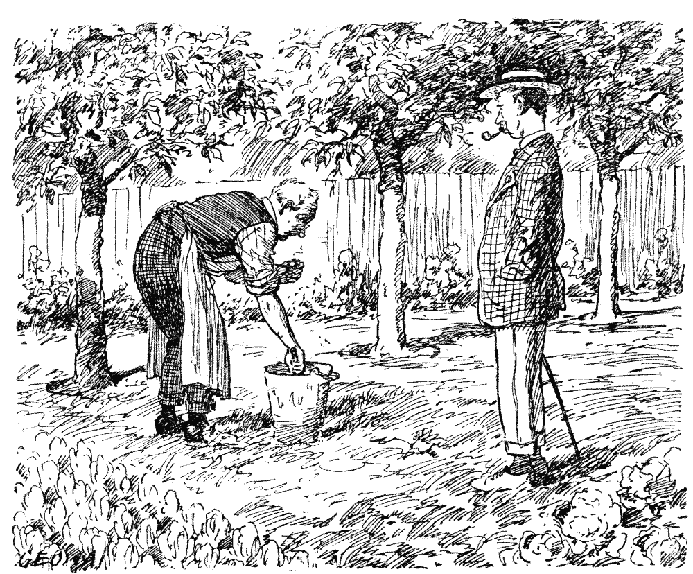 The Allotment expression, which is the correct one now, is a look of interest and expectation, because what one's planted is coming up. Some people rather spoil their Allotment expression by a puzzled look. Et pourquoi? dear, they've quite forgotten what they planted, and, though they pretend they know exactly what it is that's coming up, they really haven't the slightest!