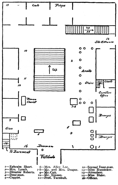 There was but one person near either of the doors, and as he chanced to be a man closely connected with the museum,—being, in fact, one of its most active directors,—he immediately turned about and in obedience to a gesture made by the attendant, ran up the marble steps, followed by some dozen others.