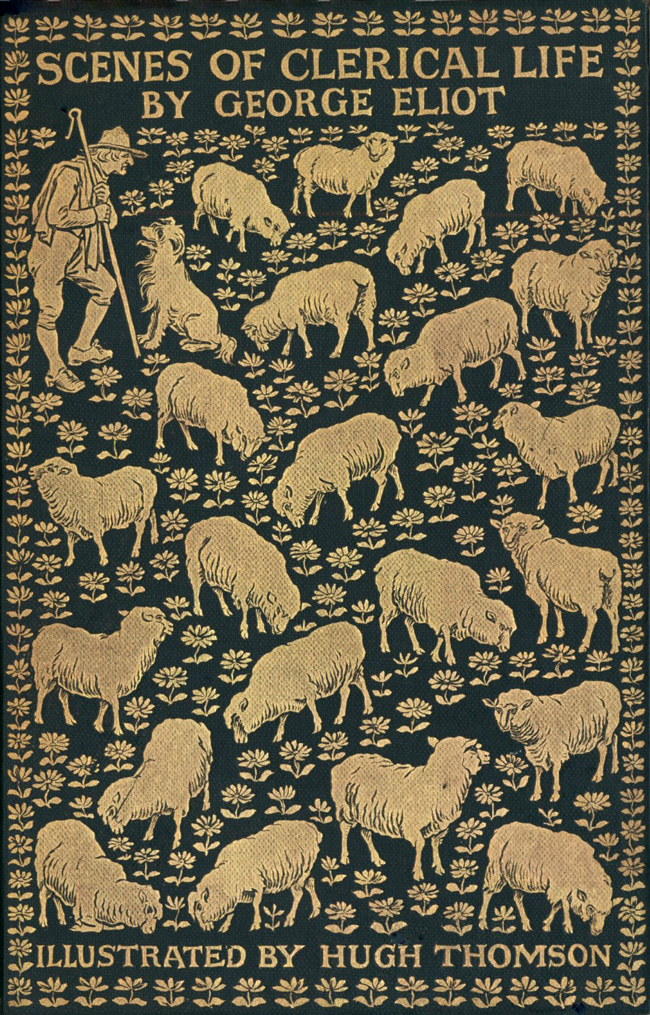 Shepperton Church was a very different-looking building five-and-twenty years ago. To be sure, its substantial stone tower looks at you through its intelligent eye, the clock, with the friendly expression of former days; but in everything else what changes! Now there is a wide span of slated roof flanking the old steeple; the windows are tall and symmetrical; the outer doors are resplendent with oak-graining, the inner doors reverentially noiseless with a garment of red baize; and the walls, you are convinced, no lichen will ever again effect a settlement on—they are smooth and innutrient as the summit of the Rev. Amos Barton’s head, after ten years of baldness and supererogatory soap. Pass through the baize doors and you will see the nave filled with well-shaped benches, understood to be free seats; while in certain eligible corners, less directly under the fire of the clergyman’s eye, there are pews reserved for the Shepperton gentility. Ample galleries are supported on iron pillars, and in one of them stands the crowning glory, the very clasp or aigrette of Shepperton church-adornment—namely, an organ, not very much out of repair, on which a collector of small rents, differentiated by the force of circumstances into an organist, will accompany the alacrity of your departure after the blessing, by a sacred minuet or an easy ‘Gloria’.