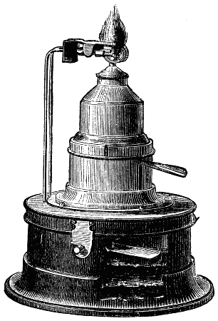 Tools of almost every description may be purchased at reasonable prices, but the practice of making one's own tools cannot be too strongly recommended. It affords a way out of many an emergency, and where time is not too valuable, a saving will be realized. A few bars of fine tool steel, a hammer, and a small anvil, are all that are required, aside from fire and water. The steel should be heated to a low red, and shaped with as little hammering as possible; it may then be allowed to cool slowly, when it may be filed or ground to give it the required form. It may now be hardened by heating it to a cherry red and plunging it straight down into clean cool (not too cold) water. It should then be polished on two of its sides, when the temper may be drawn in the flame of an alcohol lamp or Bunsen gas burner; or, if these are not convenient, a heated bar of iron may be used instead, the tool being placed in contact with it until the required color appears. This for tools to be used in turning steel, iron, and brass may be a straw color. For turning wood it may be softer. The main point to be observed in tempering a tool is to have it as hard as possible without danger of its being broken while in use. By a little experiment the amateur will be able to suit the temper of his tools to the work in hand.