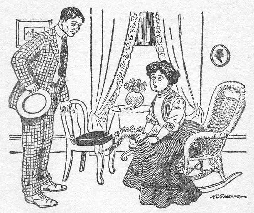 "Just after Morpheus had got both my shoulders to the shuck mattress I hears a houseful of unbecoming and ribald noises like a youngster screeching with green-apple colic. I opens my door and calls out in the hall for the widow lady, and when she sticks her head out, I says: 'Mrs. Peevy, ma'am, would you mind choking off that kid of yours so that honest people can get their rest?'