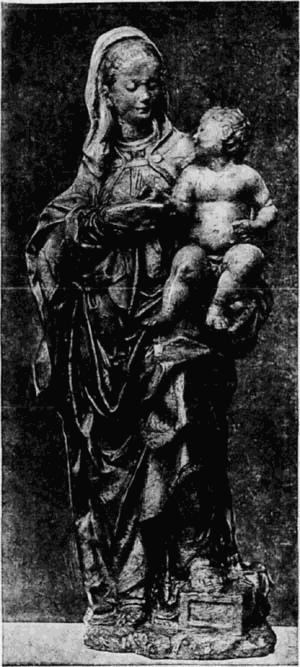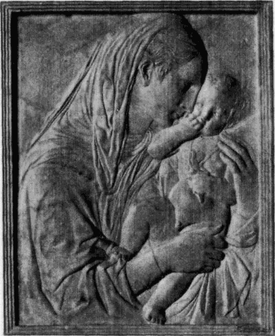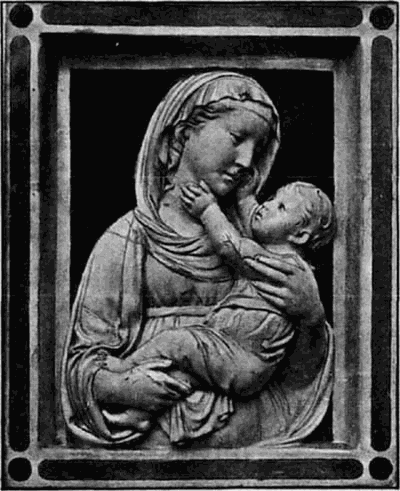 Neben Ghiberti hat eine kleine Gruppe von gleichzeitigen florentiner Bildhauern, die ihrem Namen nach meist noch unbekannt sind, in ihrer Stellung zwischen der älteren und der neuen Zeit eine verwandte, eigene Bedeutung. Während sie dem Ghiberti an Phantasie und schöpferischem Talent weit nachstehen, in der naturalistischen Durchbildung oft noch hinter ihm zurückbleiben und in ihrer Ornamentik an den überlieferten gotischen Formen festhalten, die sie in barocker Weise ausbilden, zeigen sie doch gerade in der Auffassung einen modernen naturalistischen Zug, der Ghiberti noch abgeht. Ihre einfachen Kompositionen oder Einzelfiguren sind durch Naivetät und Natürlichkeit der Empfindung ausgezeichnet; namentlich in der Madonna, die außerordentlich häufig von ihnen dargestellt ist, bringen sie das rein menschliche Verhältnis von Mutter und Kind mit eben so viel Einfachheit wie Zartheit der Empfindung zum Ausdruck. Mit ihrer Auffassungsweise sind sie offenbar der Anschauung des Volkes entgegengekommen; dies beweist schon der Umstand, daß sie regelmäßig den billigen Thon zur Ausführung ihrer Werke wählen, und daß gerade durch ihre Arbeiten sich als häuslicher Andachtsgegenstand der [51]Florentiner das Madonnenrelief, an Stelle des Madonnenbildes im Trecento, einbürgert. In diesen Madonnenreliefs, die, in bemaltem Thon oder Stuck ausgeführt, auch dem wenig bemittelten Bürger zugänglich waren, sind die häuslichen Bürgertugenden des Florentiners dieser Zeit: Keuschheit und Liebe zwischen Eltern und Kindern, in der edelsten Weise verklärt zum Ausdruck gebracht.