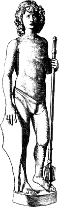 Ein anderer Schüler Sansovino’s, Girolamo Campagna aus Verona, ist Vittoria in der Schönheit wie im Ausdruck seiner Gestalten und in der Durchbildung derselben überlegen. So in der Verkündigung am Pal. del Consiglio in seiner Vaterstadt Verona, dann zu Venedig in den Gruppen der Hochaltäre von S. Giorgio Maggiore, Redentore, Sto. Stefane und S. Tommaso, in verschiedenen Einzelfiguren in Sto. Stefano, in der Scuola di S. Rocco u. s. f. Auch der Doge Loredan am Grabmal desselben in S. Giovanni e Paolo ist eine edle Porträtfigur. In der malerischen Reliefbehandlung besonders ausgezeichnet sind die Darstellungen des Bronzedeckels vom Taufbrunnen in S. Marco, die gemeinsame Arbeit des Tiziano Minio von Padua (1517—1552) und des Desiderio von Florenz. Andere Schüler, wie Pietro de’ Sali († 1563), Jacopo Colonna, Tommaso da Lugano waren, neben den Genannten, Sansovino’s [172]Gehülfen bei den Dekorationen der Bibliothek, des Dogenpalastes und der Capella del Santo in S. Antonio zu Padua. Diese großen gemeinsamen Arbeiten sind um so glücklicher, je mehr sie auf architektonische Wirkung berechnet sind; wo sie, wie im Santo, rein plastisch sein wollen und hochdramatische Motive darzustellen haben, sind Meister und Schüler ebenso schwach wie die Nachfolger Michelangelo’s und Andrea Sansovino’s in Rom und Florenz. Die letzten Ausläufer dieser Schule Sansovino’s am Ende des XVI. und im Anfange des XVII. Jahrh. sind Tiziano Aspetti († 1607) und Giulio dal Moro, deren Richtung in der Berliner Sammlung durch zwei malerisch wirkungsvolle, lebendig bewegte Marmorstatuetten, »Die Ehre« und »Der Reichtum« (No. 266 und 267), vorteilhaft vertreten ist. Mit diesen Künstlern erlischt in Venedig nahezu für ein Jahrhundert fast jede größere plastische Thätigkeit; aber auch nach ihrer Wiederbelebung durch die Berninische Kunstrichtung hat sie nicht mehr die Kraft zu einer freieren, reicheren Entfaltung.
