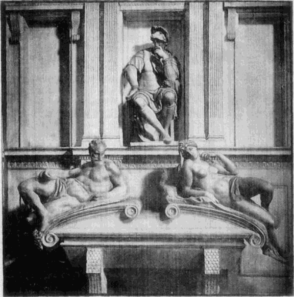 Michelangelo ist in allen bildenden Künsten gleich heimisch: der Petersdom und die Deckenbilder der Sixtina sind zwei der großartigsten Kunstschöpfungen aller Zeiten; als Bildhauer hat er zwar nichts vollendet, was sich dem ebenbürtig an die Seite setzen ließe, aber doch war die Plastik sein eigenstes Feld. Er selbst betrachtete sich in erster Linie als Bildhauer und fühlte sich am wohlsten, wenn er den Meißel in der Hand führte. Neben allen anderen großen Aufgaben ist er daher auch fast ununterbrochen als Bildhauer thätig gewesen.
