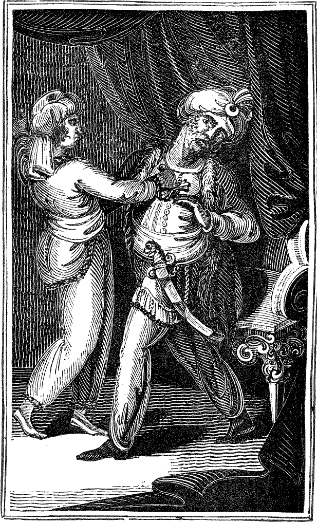 This woodcut did duty for “Arabian Nights,” “Bluebeard,” etc.; probably designed by Cruikshank, engraved by Branstone. |
