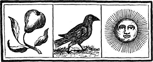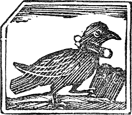 Tegg’s edition of 356 pages, 12mo, is to be seen in the Reading Room of the British Museum, and gives the full text and history of these. This curious book would well bear representing with the original Bewick cuts, after the manner of the present Newbery firm, who have revived Butterfly’s Ball, Grasshopper’s Feast, Goody Two Shoes, Looking Glass for the Mind, and contemplate others in the immediate future. Tegg in his reprint v of the Book on Philip Quarll, states that he was born in St. Giles’ Parish, London, 1647, voyaged to Brazil, Mexico, and other parts of America, was left on an island, nourished by a goat, and other surprising adventures. Edward Dorrington communicates an account (see p. 1 to 94 inclusive) of how the hermit Philip Quarll was discovered, with his (E. D.’s) return to Bristol from Mexico, Jan. 3, 1724-5; but is about returning to Peru and Mexico again (p. 94). This is of both American and Bewick interest. Besides these representatives of this Chap Book, we are enabled to give in this collection impressions from the blocks of other editions fortunately rescued from oblivion and destruction.