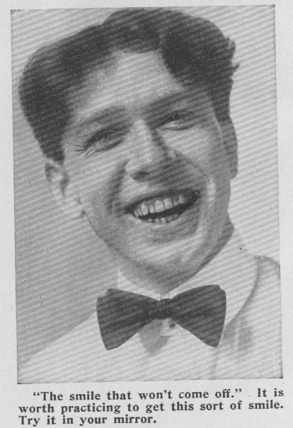 The bodily expression and mechanical efforts that go with happiness will often induce the feelings and emotions associated therewith. To prove the accuracy of this statement, some morning when you are feeling especially gloomy and unpleasant, look into your mirror and go through the process of trying to make yourself smile. Screw up your features in such a manner as to force the required contractions of the facial muscles. If you continue your efforts long enough you will surely be rewarded by a real smile, and with the sense of good cheer that a smile will bring. You will make the surprising discovery at it is no longer an effort, for you will smile spontaneously.