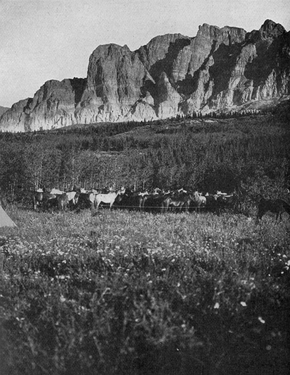 During the year before, I had ridden over the better-known trails of Glacier Park with Howard Eaton's riding party, and when I had crossed the Gunsight Pass, we had looked north and west to a great country of mountains capped with snow, with dense forests on the lower slopes and in the valleys.