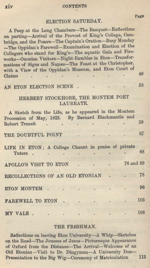 works—Oxonian Visitors—Night—Rambles in Eton—Transfor-