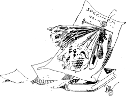 | 97 | A camel may not be able to pass through the eye of a needle, but that does not deter many a lobster from trying to do so. | illustration |