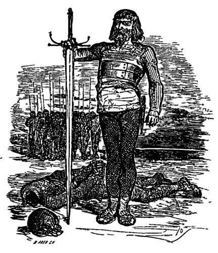 Le rustre allait tuer le loup; mais Dagobert, prenant sa petite hache de chasse qui était cachée dans l'herbe, s'élança sur lui et lui porta un coup qui le fit tomber. On accourut aux cris, on reconnut Dagobert, et on fut étonné de voir quel homme il avait mis à la raison. C'était l'un des plus redoutés coureurs de bois, un voleur de grands chemins, que l'on cherchait depuis tantôt un an, et une récompense considérable avait été promise à celui qui parviendrait à se saisir de lui. Dagobert reçut la récompense et fut grandement loué par le roi Chlother.